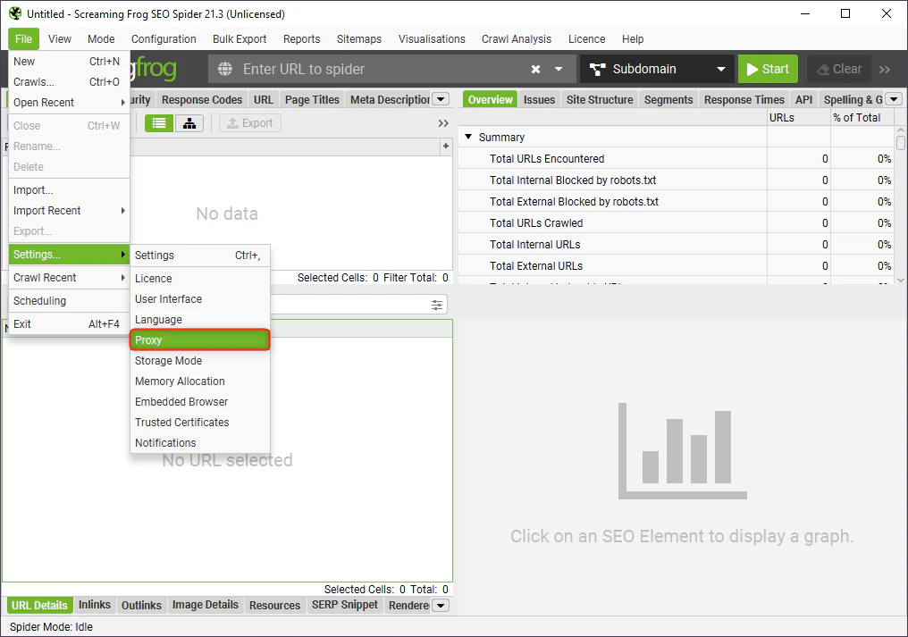 一些工具会使用搜索引擎作为代理测试目标:如果您的代理测试失败,这可能就是原因。请确保您的测试目标域名不是搜索引擎(此设置在工具配置中,而非 Bright Data 代理的控制范围内)。什么是 Screaming Frog?