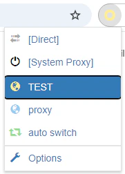 - 要启用代理,从浏览器工具栏的 SwitchyOmega 下拉菜单中选择已配置的配置文件。