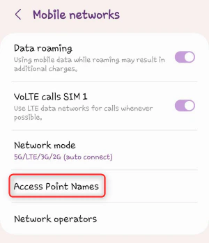 Tap Mobile Networks, then select Access Point Names (APNs).