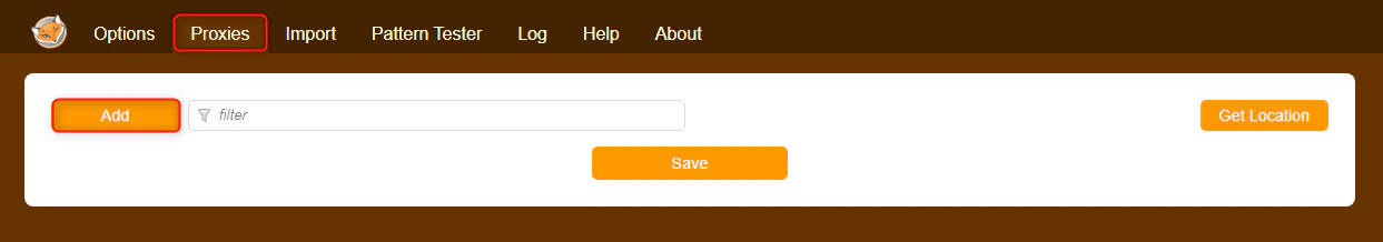 In many tools you will see a “test proxy” function, which performs a conncectivity test to your proxy, and some add a geolocation test as well, to identify the location of the proxy. To correctly test your proxy you should target those search queries to:https://geo.brdtest.com/welcome.txt .Some tools use popular search engines (like google.com) as a default test target. Bright Data will block those requests and you tool will show proxy error although your proxy is perfectly fine.If your proxy test fails, this is probably the reason. Make sure that your test domain is not a search engine (this is done in the tool configuration, and not controlled by Bright Data).What is FoxyProxy?