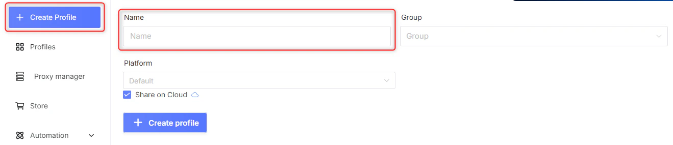 - From the GenLogin dashboard, click Create Profile to create a new profile or select an existing one to edit.