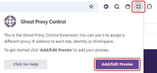 - Click the Ghost Proxy Control icon in the top-right corner of the browser.