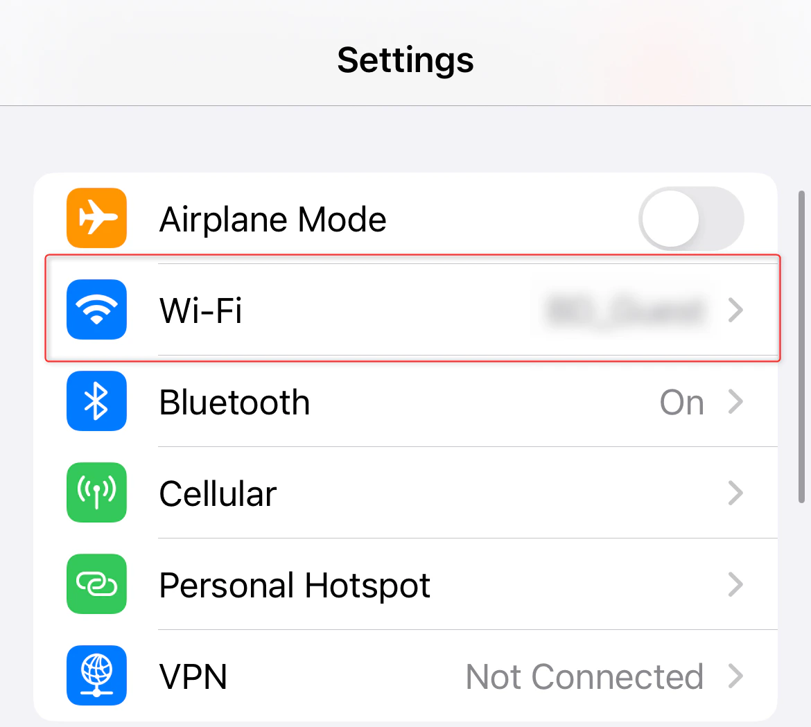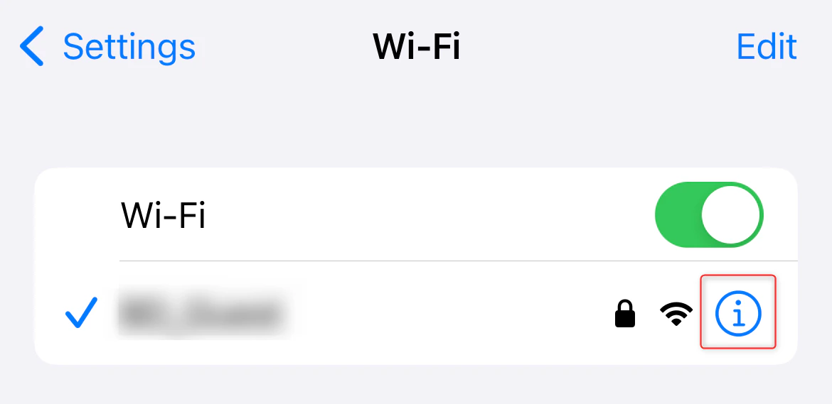 - Tap Wi-Fi, then select the ⓘ (Info) icon next to your connected network.