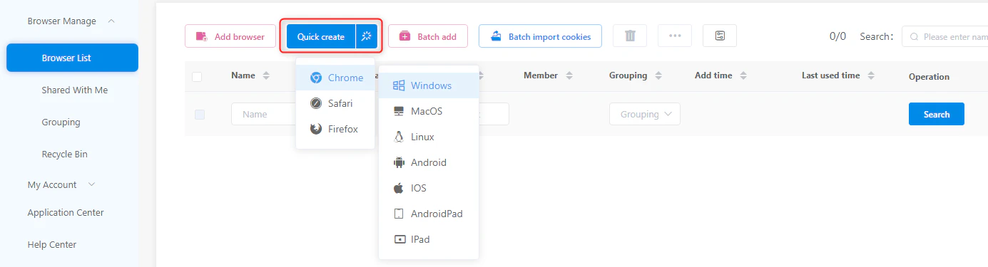 - Once logged in, you’ll see your dashboard with existing browser profiles (if any).