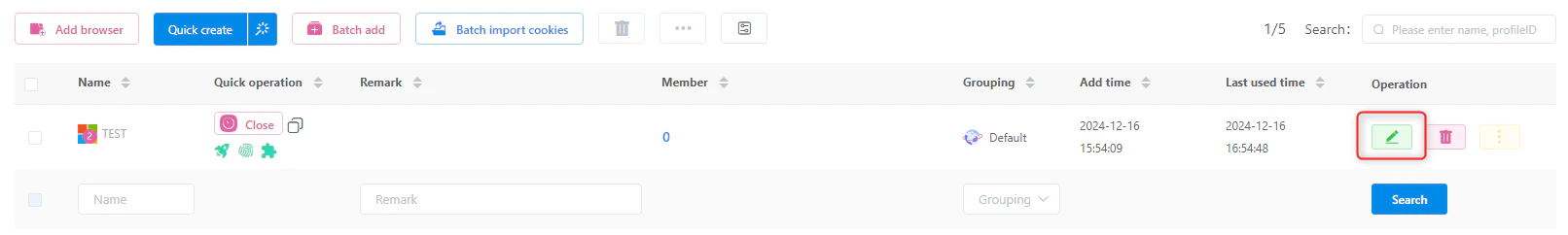 - If you want to modify an existing profile, select it from the list and click on “Edit”, “Settings”, or the gear icon—the exact naming may vary based on MuLogin’s current UI.