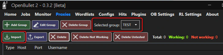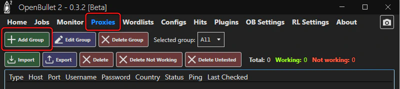 - Open OpenBullet and navigate to the Proxies tab.