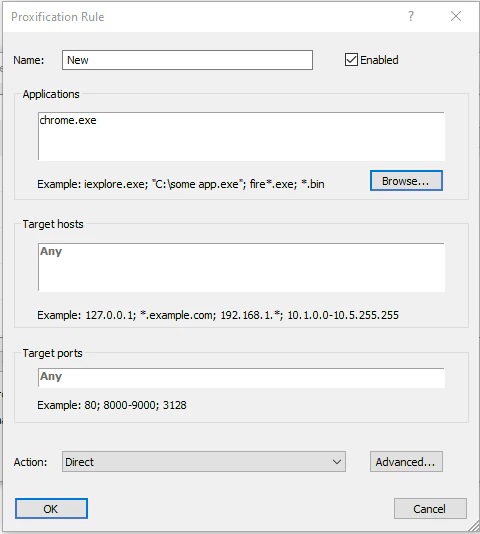 - Use the Browse button to specify the application (e.g., Chrome, Firefox) for the rule.
