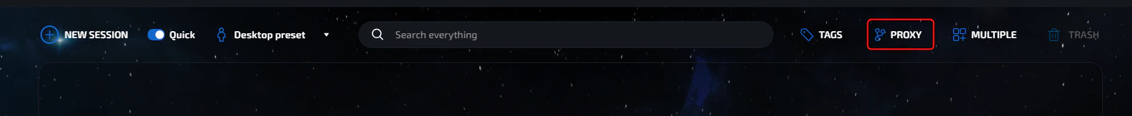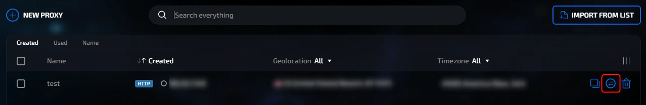 - Click the Create button (icon with a checkmark) to save the proxy settings.
